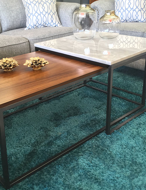 Mesa de centro fabricada con estructura metálica dorada o negra,
